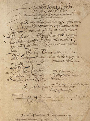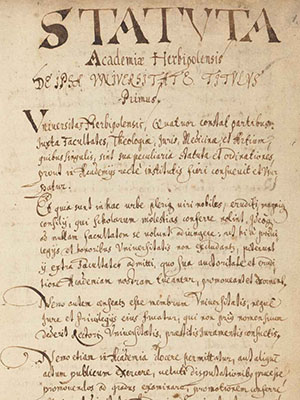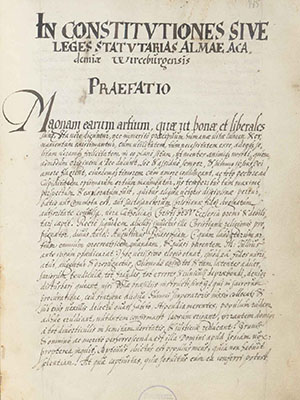 The University of Würzburg was founded in 1582 by Prince-Bishop Julius Echter, following an earlier precursor institution that existed briefly at the beginning of the fifteenth century. Since its re-establishment, the processes of university self-governance and the organization of teaching have given rise to a range of written records that have been systematically created and maintained.